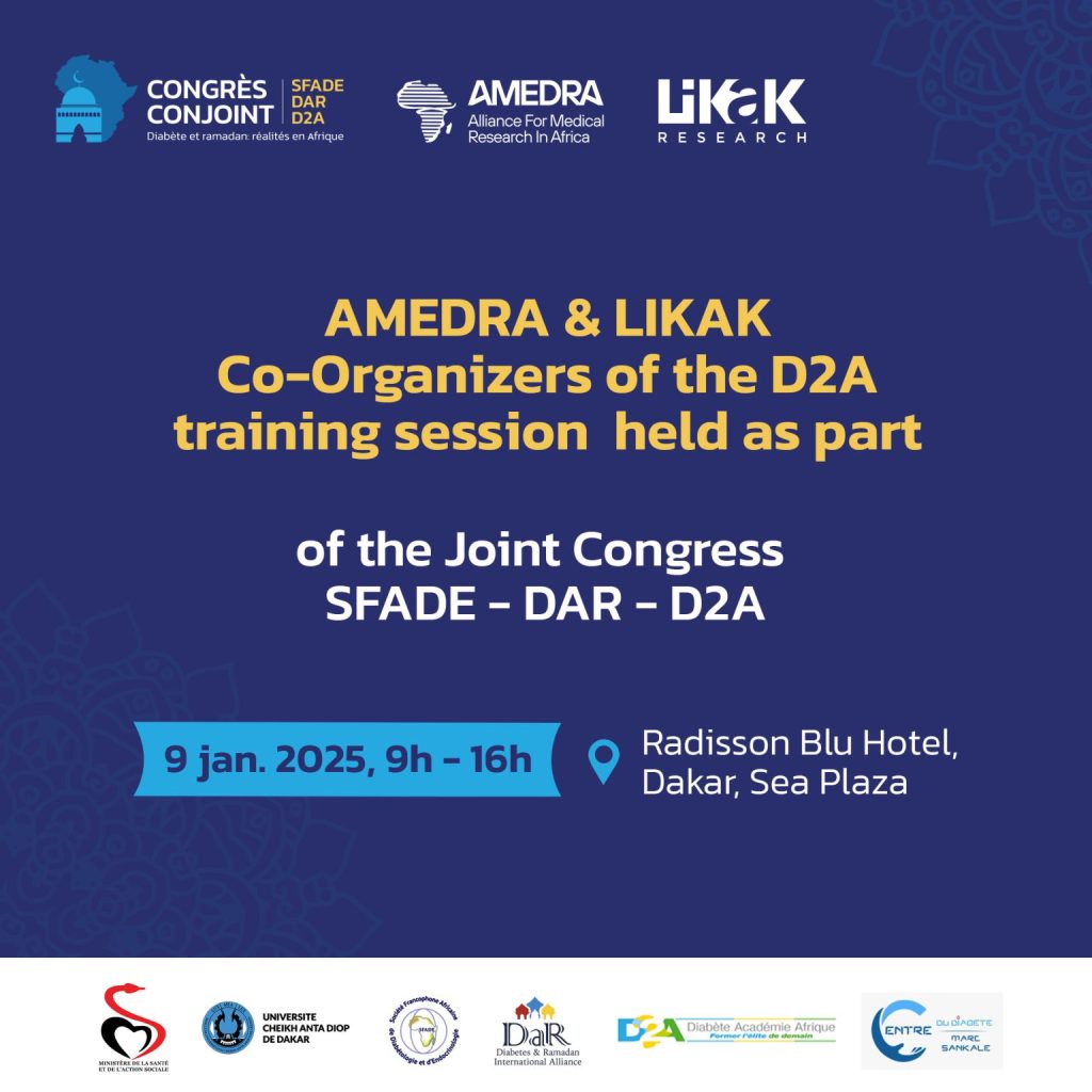 As part of the Joint Congress SFADE (Société Francophone Africaine de Diabétologie et d’Endocrinologie) – DAR – D2A, AMedRA hosted the D2A Training Session on January 9, 2025, at the Radisson Blu Hotel, Dakar, Senegal.